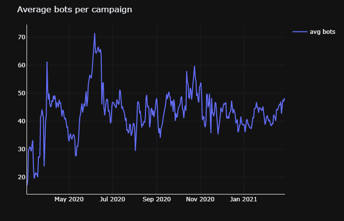 Daily average of 39-48 bots per campaign/token issuers