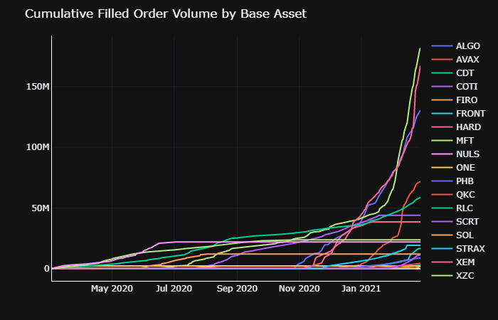 Cumulative filled order volume¶