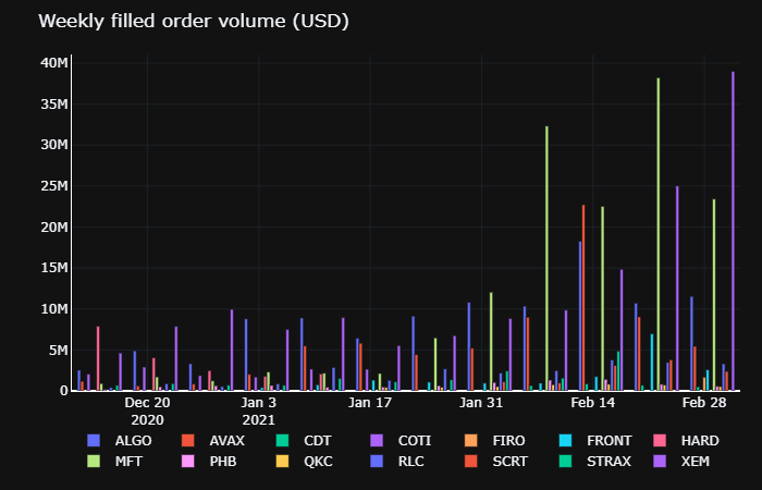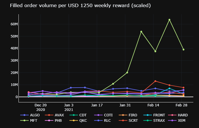 Over the past week, a weekly reward pool of equivalent $1,250 (our minimum recommended amount for issuers for a campaign), resulted in weekly average of $5.7m filled order volume