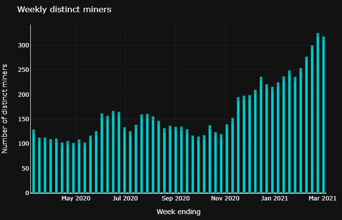 We saw 24.5% growth in the number of weekly active distinct miners in February.