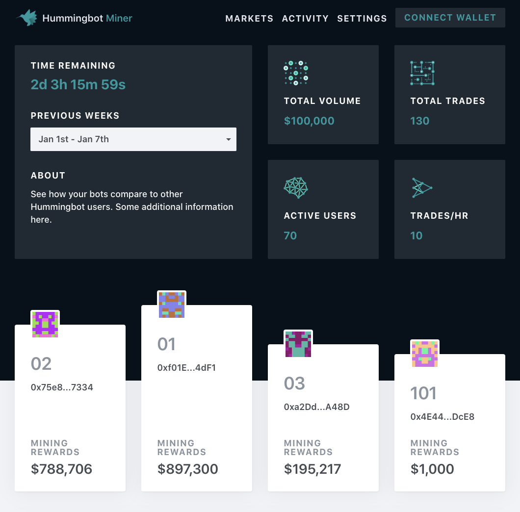 For exchanges and projects who would like to learn more about liquidity mining, please contact us at partnerships@hummingbot.io.