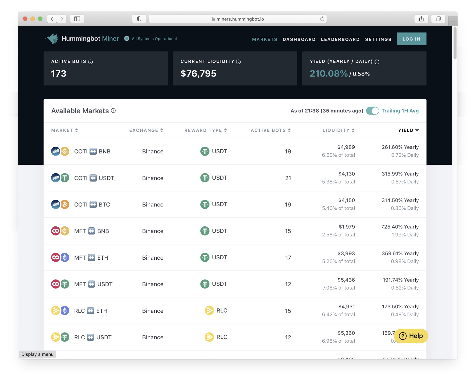 - Hummingbot Miner’s app: current liquidity mining campaigns
