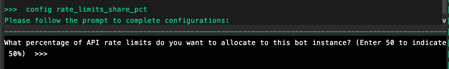 config rate_limits_share_pctwhile the strategy is stopped - Enter the percentage of API rate limit you want to allocate to the bot