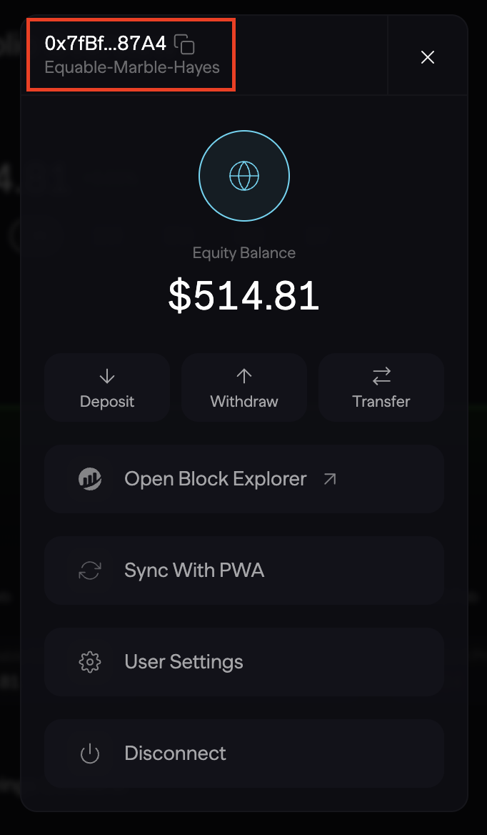 - Click on button with your wallet address.