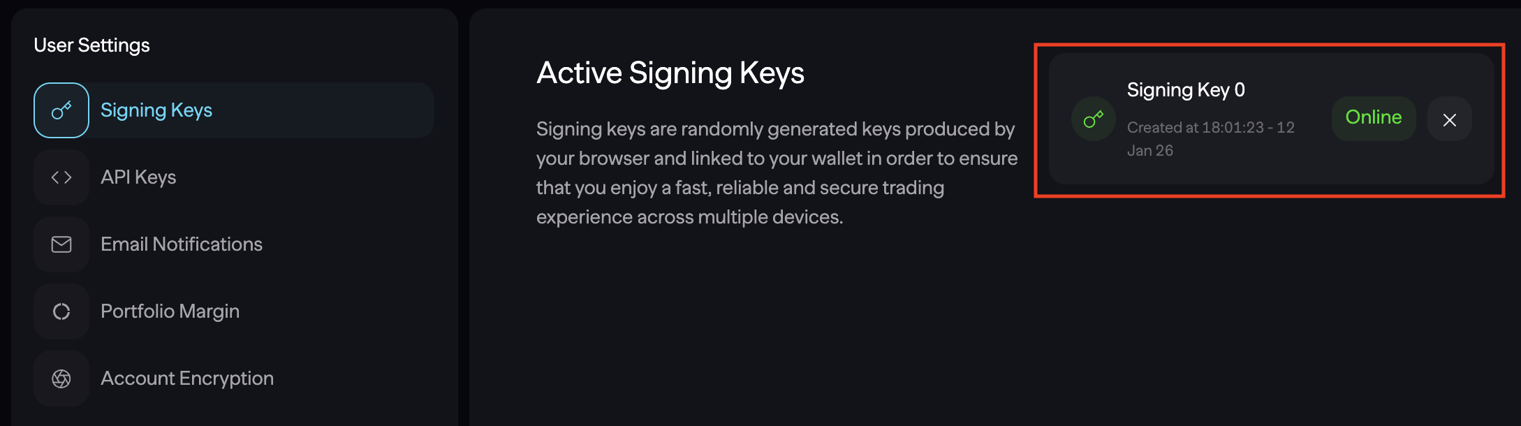 - Go to Active Signing Keys page.