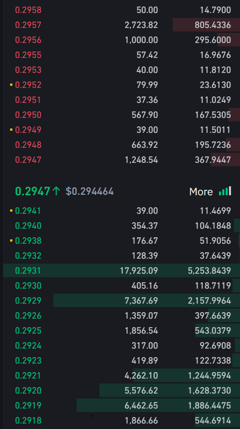 Setting our bid and ask threshold to a very small value (0.1%) puts our orders at the top of the order book. For example, the image below shows the buy order is placed at 0.003159 and the sell order at 0.003165 with the order optimization disabled.