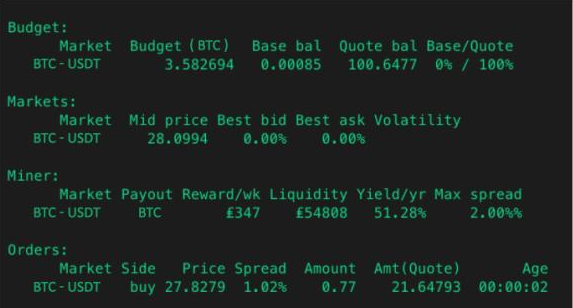 The conversion also shows up during the status command for the liquidity_mining strategy. Under the Miner section.