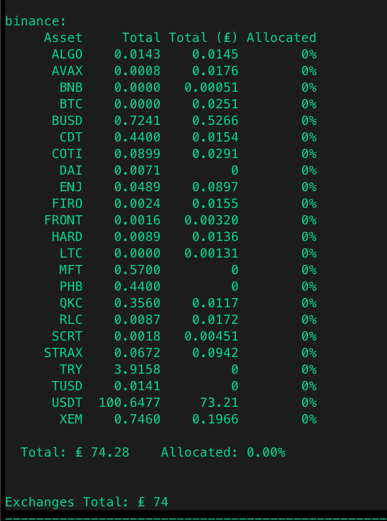 The conversion also shows up when running the trades command.